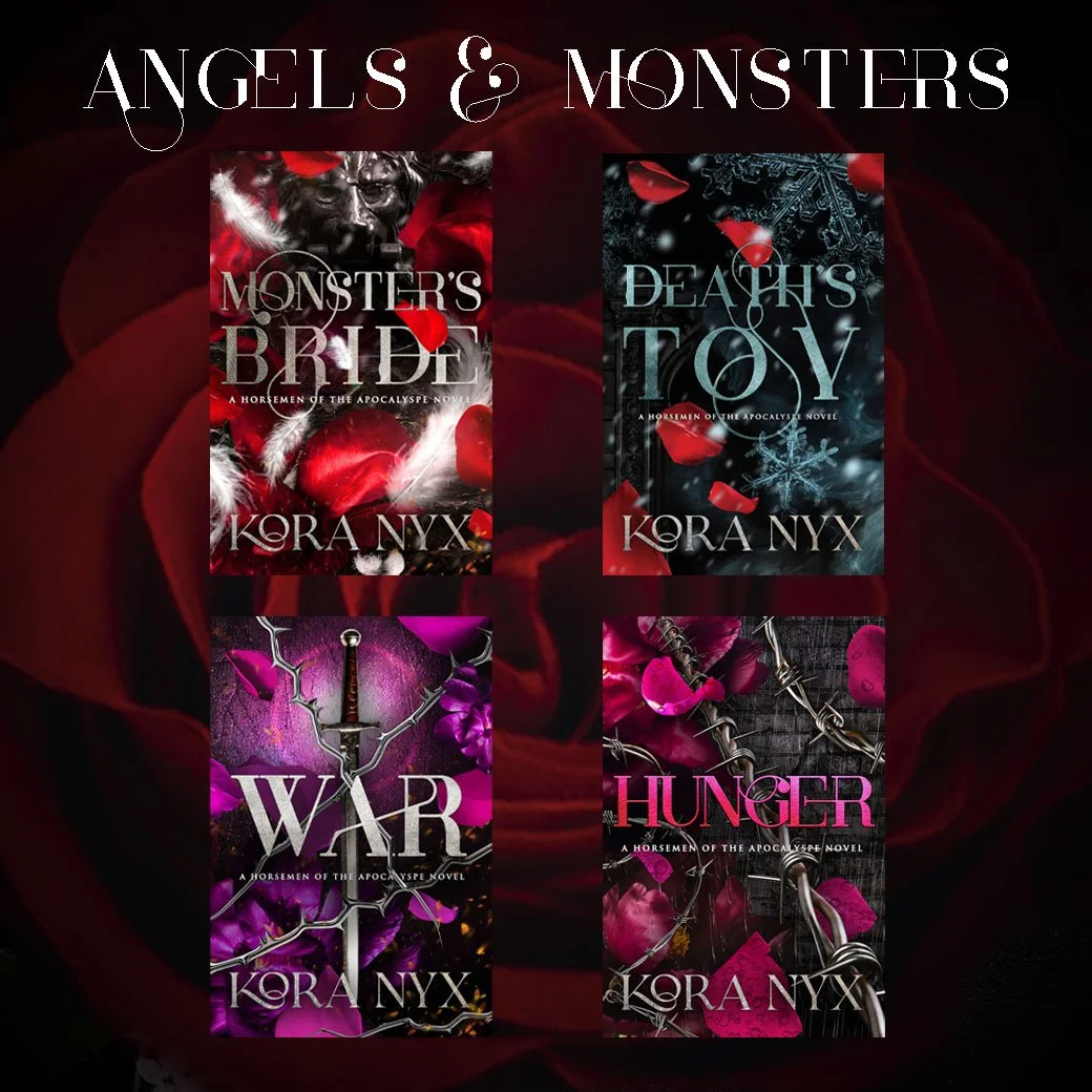 Angels & Monsters is a dark paranormal romance series about the Four Horsemen of the Apocalypse where villains get their happily ever after, monsters claim their brides, and angels fall—hard.